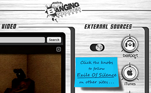 Designed a MySpace interface mimicking a DJ switchboard for digital music artist Exile of Silence. Used CSS classes assigned within MySpace to different "buttons" with specific functionality to place the positions of those buttons to align with the ones within my "skin", or design.. Also designed and programmed a Flash animation featuring Exile of Silence's album releases and the links to the websites they were available for sale, with a "digital" transition effect to be placed within the new MySpace implementation.